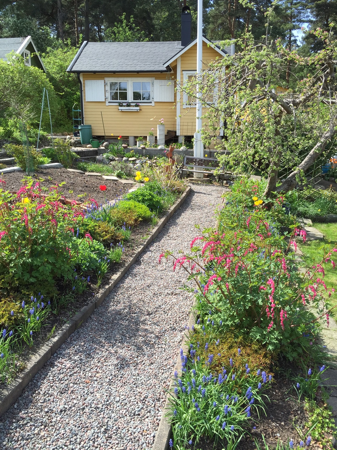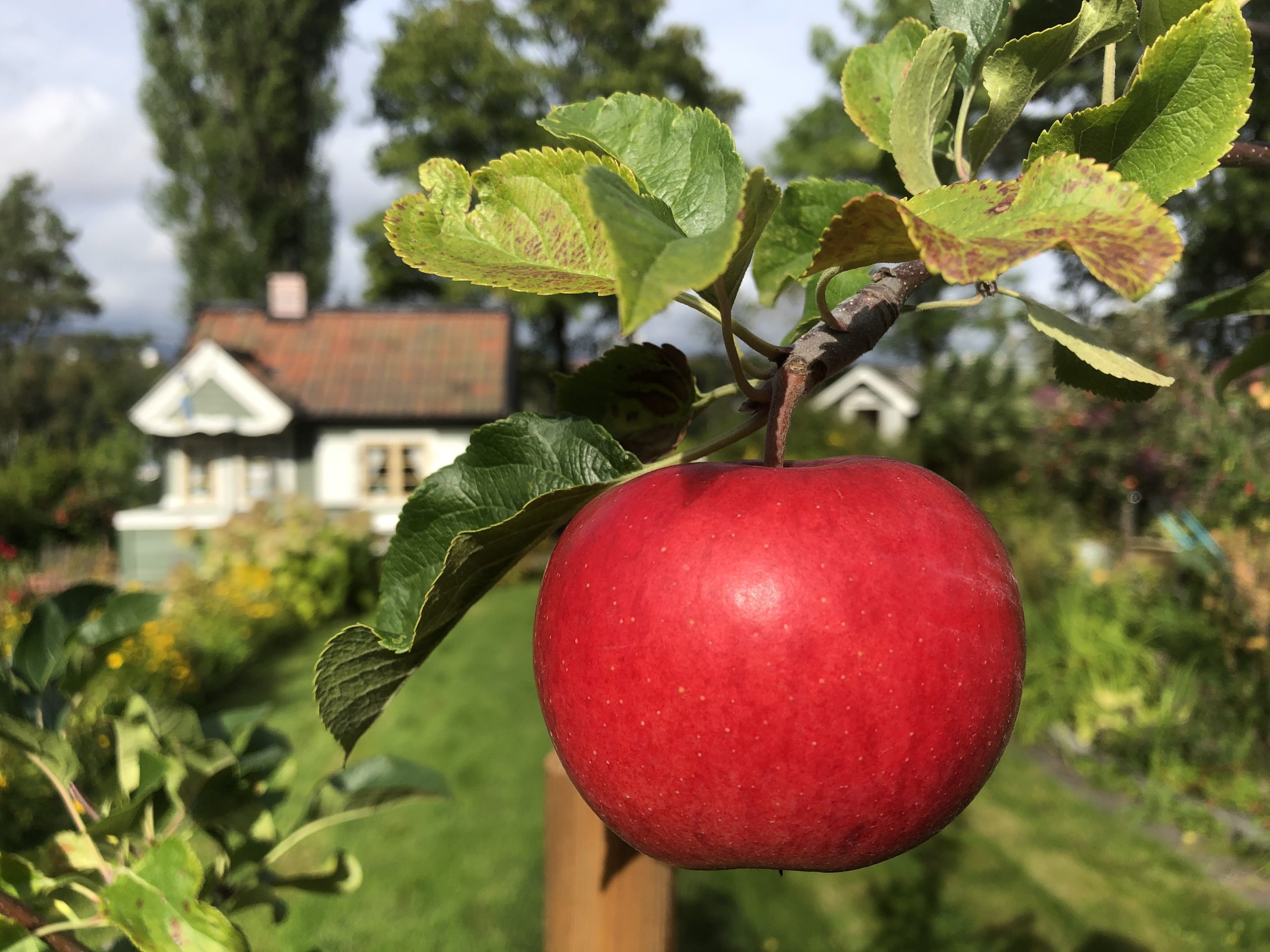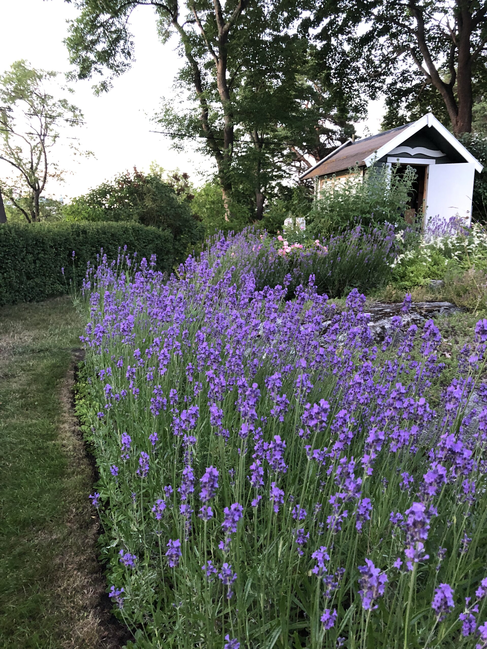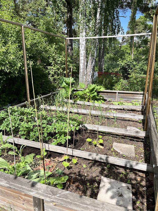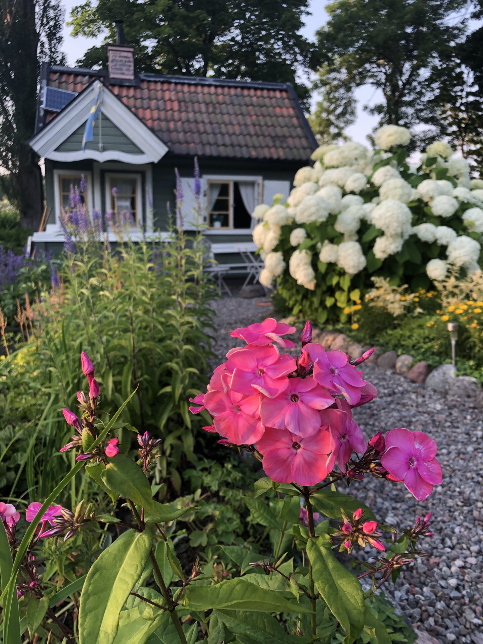 En av de största trädgårdarna i området med flera gamla fruktträd – äpple, päron och plommon – samt bärbuskar, en lavendelrabatt och mycket annat. I den stora odlingslådan vid ena sidan av huset odlas potatis, rabarber, kål och andra grönsaker. Följ Stuga23 på Instagram.